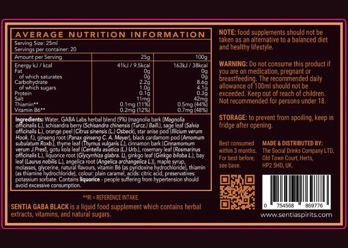 Безалкогольный релакс блэнд Sentia Gaba Spirits Black